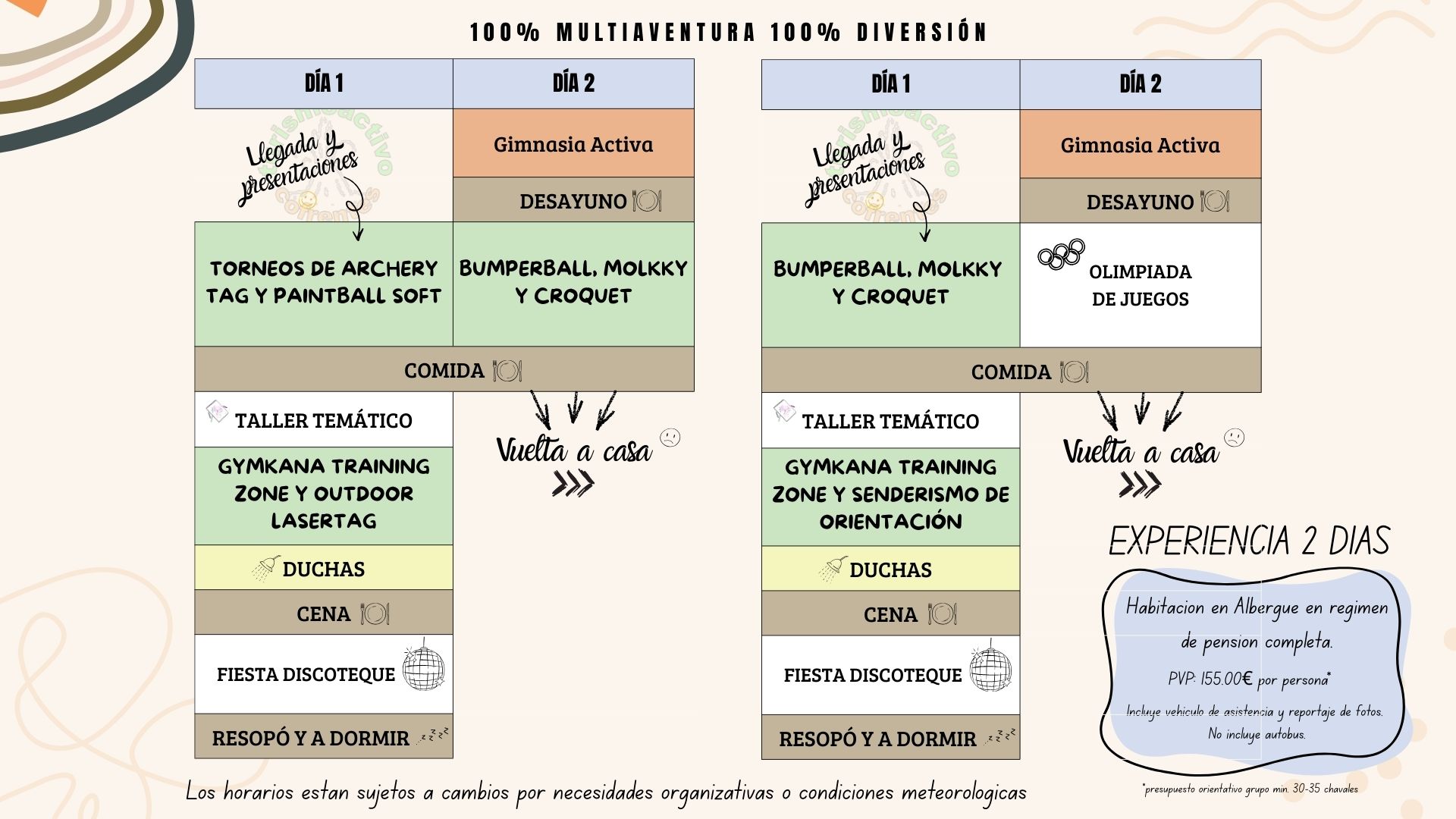 Todo esto es lo que te ofrecemos en nuestros campamentos 100% multiaventura 100% diversión.