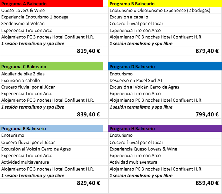 Y también precios, por si lo prefieres, en el Balneario de Cofrentes, con una sesión de circuito termal incluida: